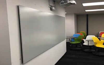 Pizarrón sin marco, con soportes ocultos para su sujeción al muro.