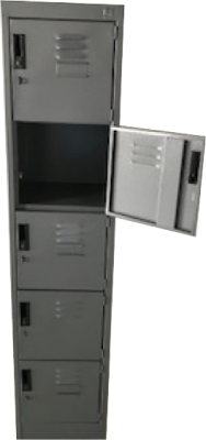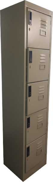 Locker metálico de cinco puertas con refuerzo en cada puerta.