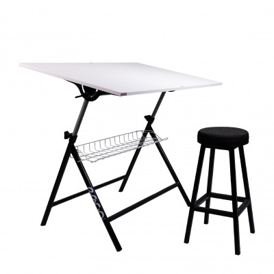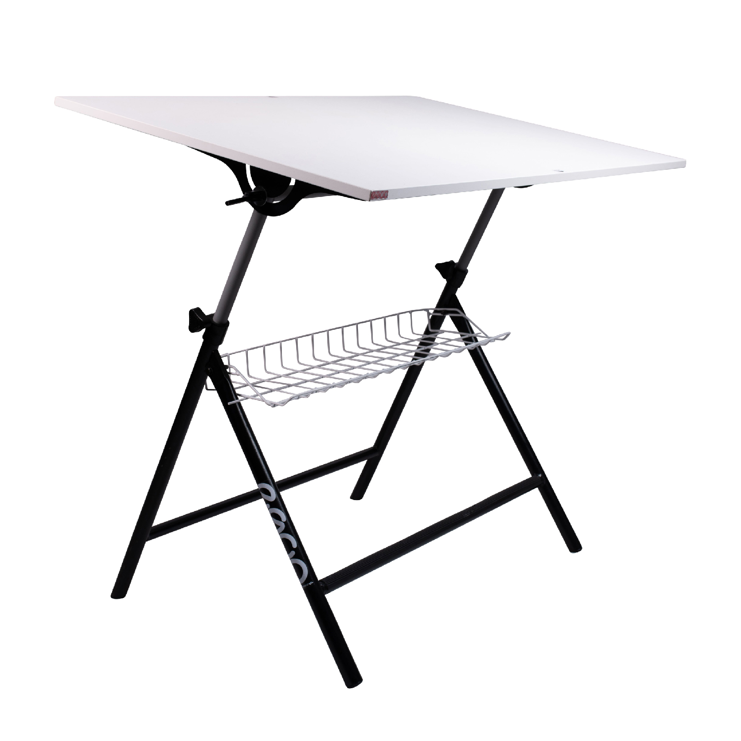 Canastilla opcional, de alambre en color negro ideal para soportar planos y útiles, muy práctica y funcional.