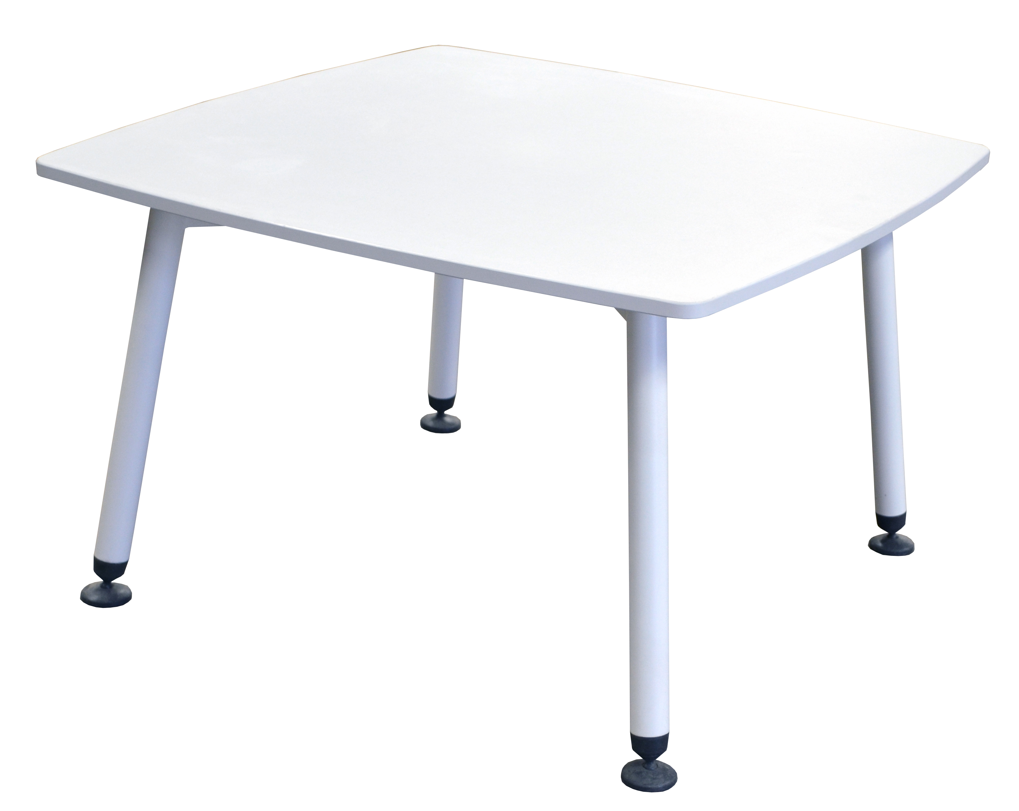 Estructura metálica de cuatro patas redondas con niveladores articulados. Cubierta blanca mate o brillante para escribir a elección.