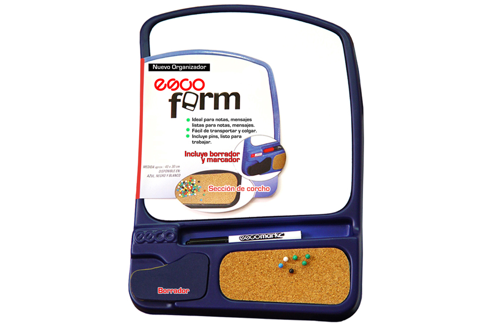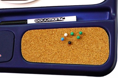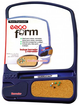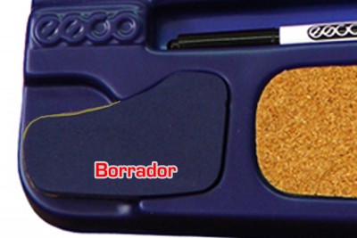Tablero integral con pizarrón blanco, área de corcho y porta plumón.