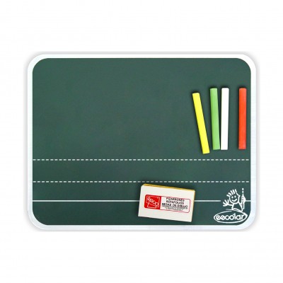 Incluye Pizarrón Blanco: mini borrador, marcador y sujetamarcador. Pizarrón verde: mini borrador y gises de colores.