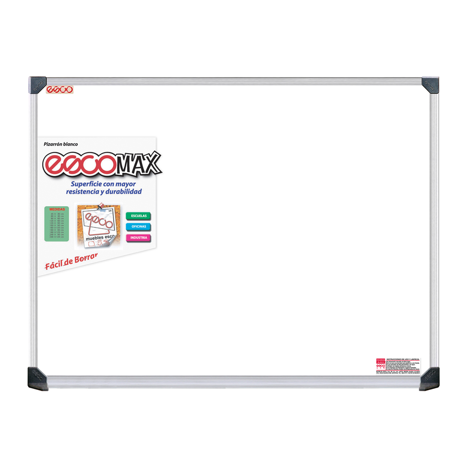 Marco perimetral y porta marcador y/o porta borrador completo en la parte inferior de aluminio reforzado.