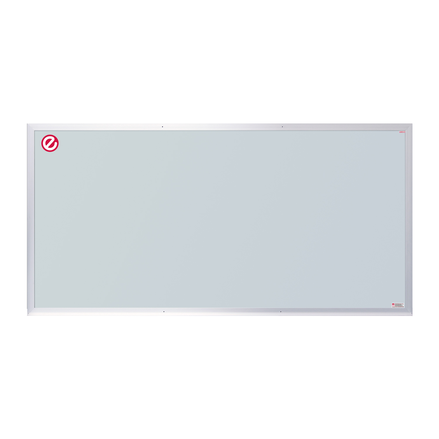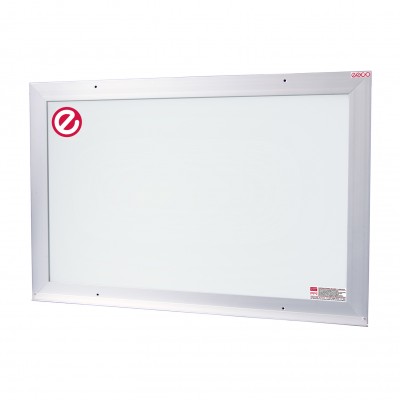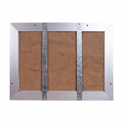 Marco de aluminio reforzado anodizado natural en corte a 45 grados, con porta borrador completo de diseño exclusivo. Con barrenos avellanados para su sujeción.