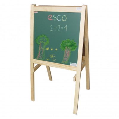 Rotafolio infantil a dos caras: Una verde para escritura con gis y otra blanca para marcador de borrado en seco.
